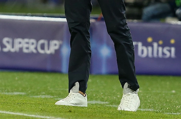 3. Молодой тренер Луис Энрике – икона стиля. Никто не забыл его моднейшего прикида с финала Лиги чемпионов, сегодня он снова был в костюме, но, надев брюки, рубашку и пиджак, запрыгнул в белые, как сулугуни, кеды.