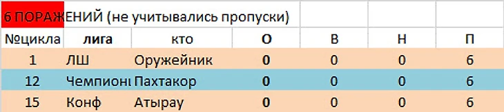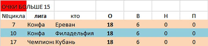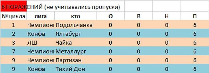 Как видим, все случаи 6 побед из 6 были зафиксированы в Чемпе и Конфе.