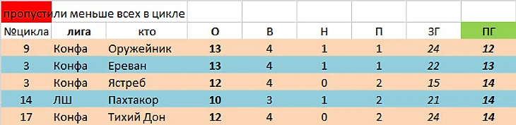Лучшая защита в сезоне 2014/15 была в 9-м цикле у Оружейника (12 голов)