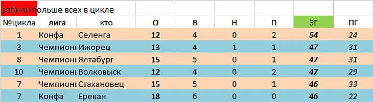 Предыдущее достижение Тихого Дона 51 гол (9-й цикл сезона 2012/13)