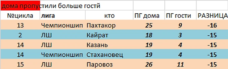 Пахтакор, наоборот, в 13-м цикле пропустил в гостях на 16 меньше, чем дома (9 и 25).