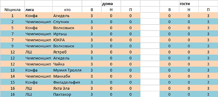 Несколько команд отличились в "классическом стиле" - 3 победы дома и 3 поражения в гостях.