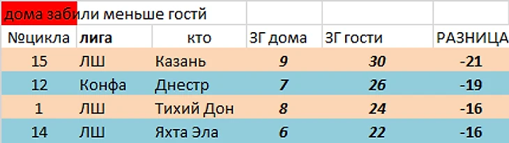 Казань в 15-м цикле забила дома всего лишь 9 голов, а в гостях 30! Разница +21