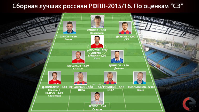 Сборная лучших россиян РФПЛ-2015/16. Для игроков, получивших оценки "СЭ" в четырех и более матчах. Фото "СЭ"