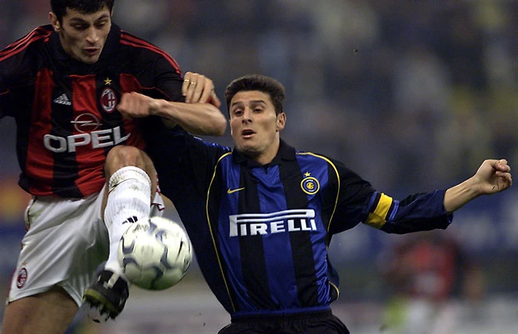 Октябрь-2001, вечный Хавьер Дзанетти сражается с Кахой Каладзе. «Милан» побеждает 4:2 (дубль Шевченко, Контра, Индзаги – Вентола, Каллон).