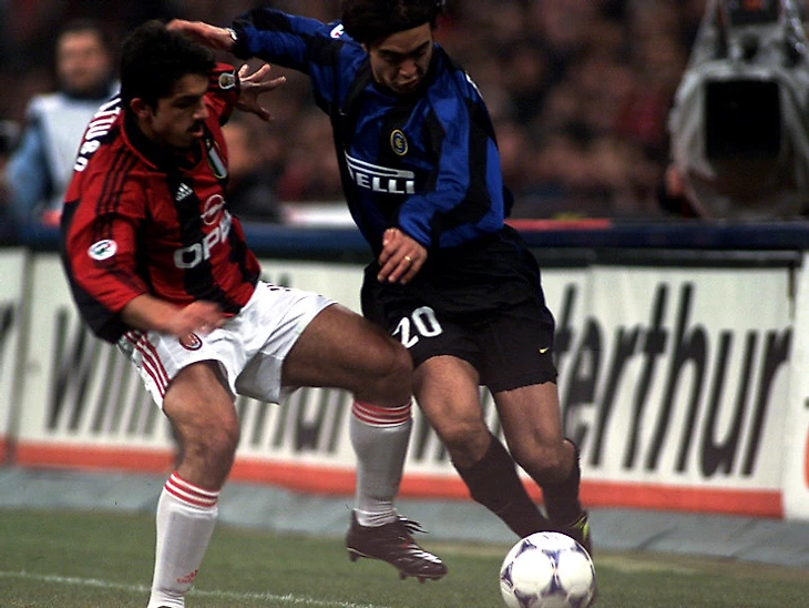 Март-2000. Дженнаро Гаттузо (слева) против Альваро Рекобы. Матч закончился победой «Интера» 2:1 (Саморано, Ди Бьяджо – Шевченко). Кларенс Зеедорф играл еще за «Интер».