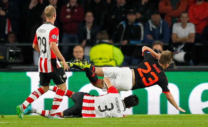 В первом матче группового раунда Лиги Чемпионов, в группе B встречались голландский «ПСВ» и английский «Манчестер Юнайтед». Перед игрой, мировые таблоиды делали акцент на возвращении Мемфиса Депая на родной стадион, на возвращении Луи Ван Гала в Нидерланды в объятия команды, с которой у него сложились непростые отношения. Но на утро, футбол уже мало кого интересовал. На четырнадцатой минуте и тринадцатой секунде, доигрывая эпизод до конца, Шоу был в прямом смысле срублен защитником «ПСВ» Эктором Морено. Отвратительный подкат в штрафной площади, возможно прервал, так хорошо начавшийся сезон для Люка Шоу. За свои грубые действия мексиканец не получил даже желтой карточки.