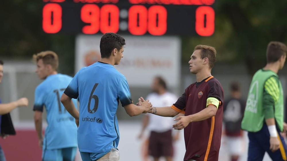 Соперником Juvenil A в первом матче стала столичная «Рома». Итальянский коллектив, которым руководит Альберто Де Росси (отец известного футболиста Даниеле Де Росси), в прошлом году демонстрировал отличную игру и добрался до полуфинала Юношеской лиги, где был бит только будущим обладателем трофея лондонским «Челси». В нынешнем сезоне римляне, разумеется, планируют, как минимум повторить успех, в преддверии встречи с «Барселоной» уже успев размяться в чемпионате на «Эмполи», разгромив своего соперника со счетом 5:0. Хет-триком отметился 17-летний форвард Эдоардо Солери, который в среду должен был стать главной угрозой воротам «блауграны».