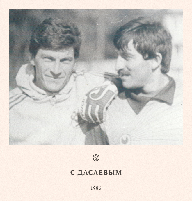 Тарасовка. Фотографии с моим коллегой по «Спартаку» — Ринатом Дасаевым. C Ринатом у меня сложились великолепные отношения. Дасаев был для меня маяком, к которому я стремился. Передо мной был пример, как нужно играть, выручать, приносить победы и работать. Дасаев отличался стабильностью и мастерством.