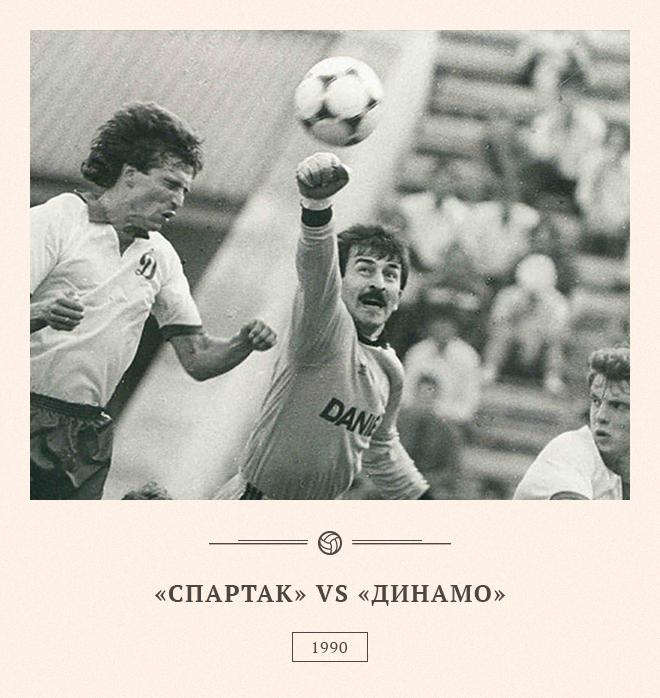 Стадион «Лужники». Чемпионат СССР. «Спартак» против «Динамо». Отбиваю мяч кулаком в поле. Тогда динамовцы выиграли у нас со счётом 2:1. На фото Алексей Ерёменко – старший, я, Сергей Кирьяков.