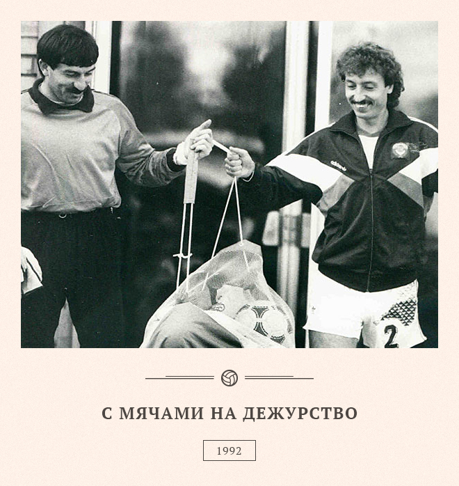 Новогорск. Сборная СНГ. На фото я (слева) и Сергей Алейников (справа). Судя по всему, мы с ним дежурили в этот день, и поэтому нам пришлось нести мячи на тренировку.