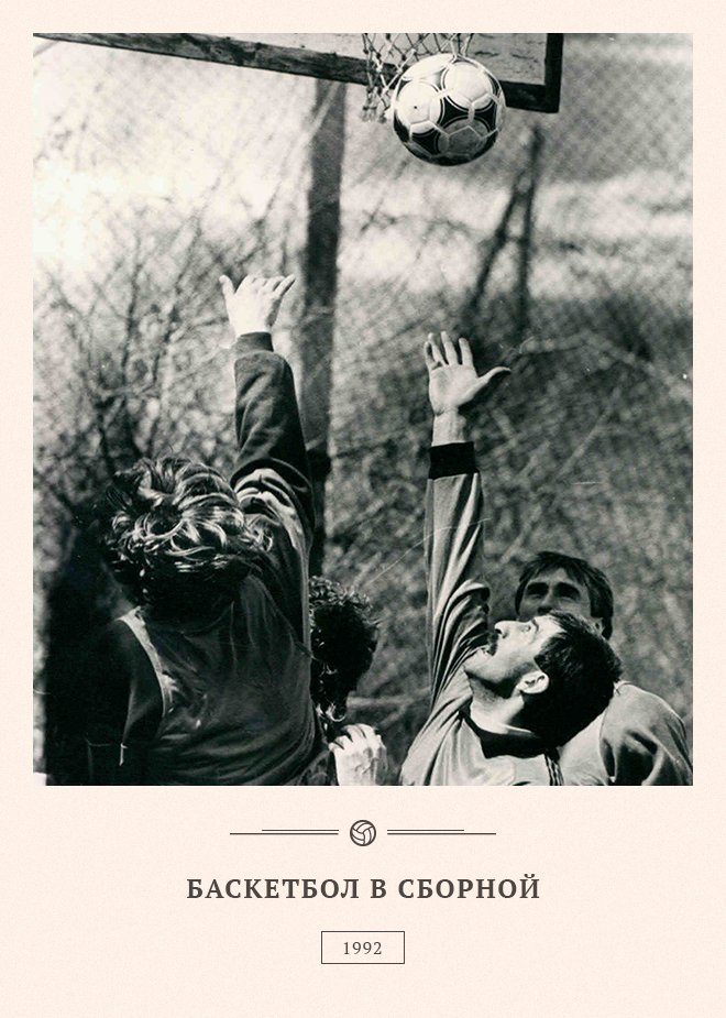 Новогорск. Тренировка сборной. Играю в баскетбол с партнёрами по команде. Сборы в национальной команде всегда начинались с баскетбола или чего-то подобного для того, чтобы поднять эмоциональный фон. Первые дни сборов носили подготовительный характер.