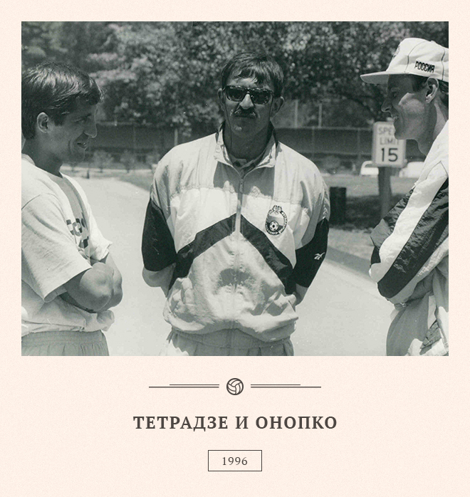 Англия. Чемпионат Европы — 1996. На фото Омари Тетрадзе (слева), я и Виктор Онопко (справа). Онопко, по моему мнению, был защитником топ-уровня.