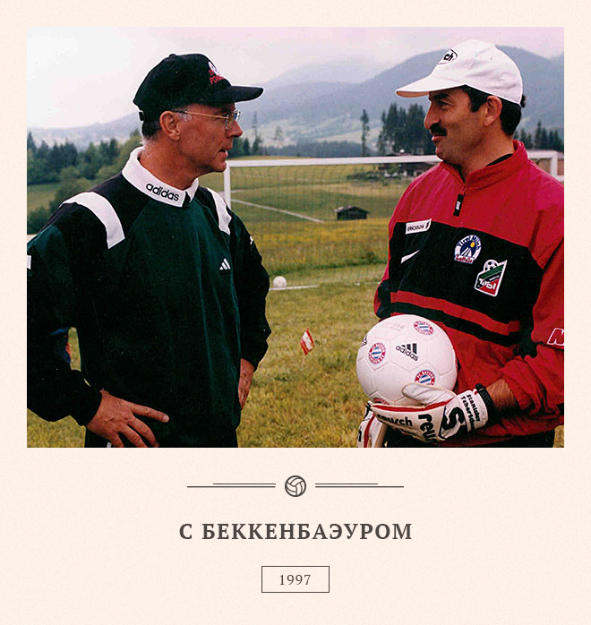 Кицбюэль. В гостях у Франца Беккенбауэра. Интересно, что он живёт на улице Кайзер. Нас тогда попросили сделать серию совместных снимков для рекламной кампании. В саду Франца установили ворота, по которым он мне наносил удары, а я старался отбивать.