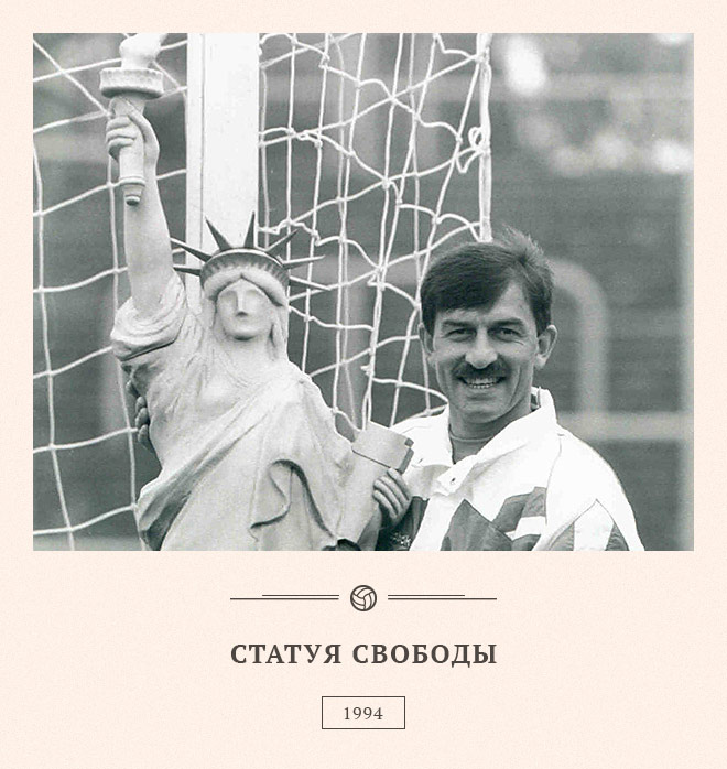 На чемпионате мира в США. В расположение команды принесли статую Свободы, и я с ней сфотографировался.