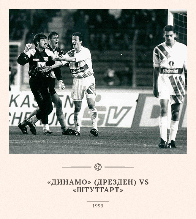 Первый зарубежный клуб в карьере – дрезденское «Динамо». В тот день мы играли против «Штутгарта». Наша команда одержала победу со счётом 1:0. На фото рядом со мной — мой друг и соперник Фреди Бобич. Не помню, что случилось в том конкретном эпизоде, но, судя по фотографии, меня разозлили.