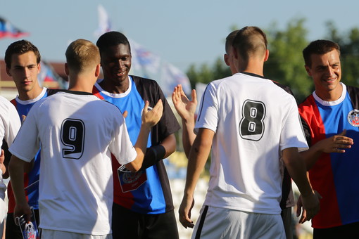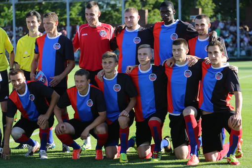 Давеча случился товарищеский матч между сборными двух самопровозглашённых республик. Нас ожидаемо заинтересовала форма, в которой провела матч сборная ДНР. С разбегу узнать, что за производитель взялся экипировать РФС, не удалось. Глядя на фото можно только сделать вывод, что производитель этот от футбола достаточно далёк, потому что он, судя по всему, не выпускает вратарские майки - кипер донетчан играл в Хоме.