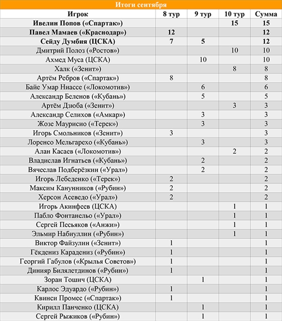 Стоит отметить, что Ивелин Попов не только завоевал звание MVP недели, но и стал лауреатом премии самому ценному игроку сентября, учреждённой совместно «Чемпионатом» и Российской футбольной Премьер-Лигой.