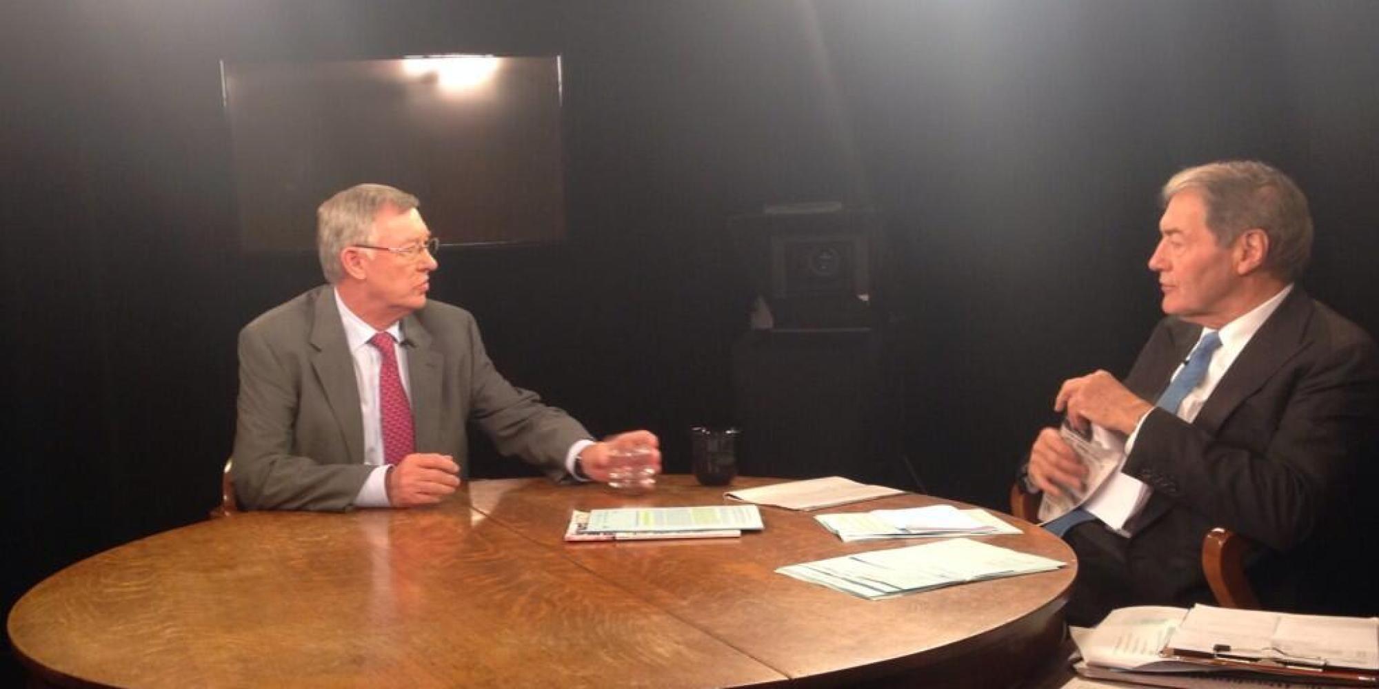 Сэр Дэвид Фрост берет интервью у Ричарда Никсона.
