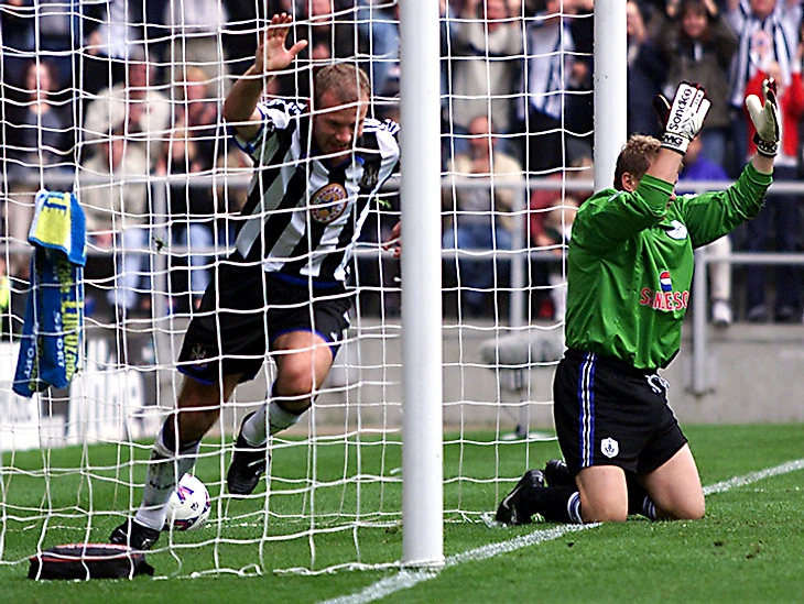 Алан Ширер, лучший снайпер АПЛ. Отгрузил пять мячей «Шеффилд Уэнсдей» в 1999-м. Его «Ньюкасл» тогда победил 8:0.