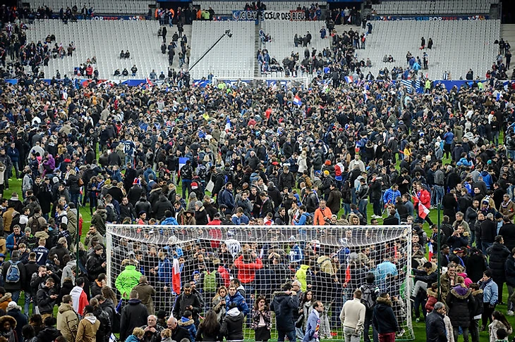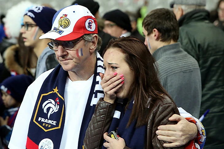 Французы боятся, но это здравомыслящий страх неизвестности, а не паника. Очевидцы отмечали, что все службы срочного реагирования четко выполняли свою работу, люди помогали друг другу, следовали приказам властей, открывали пункты помощи пострадавшим. Выходящая со «Стад де Франс» толпа, которая к тому моменту уже все понимала, направлялась в воротам без спешки и единым хором пела «Марсельезу».