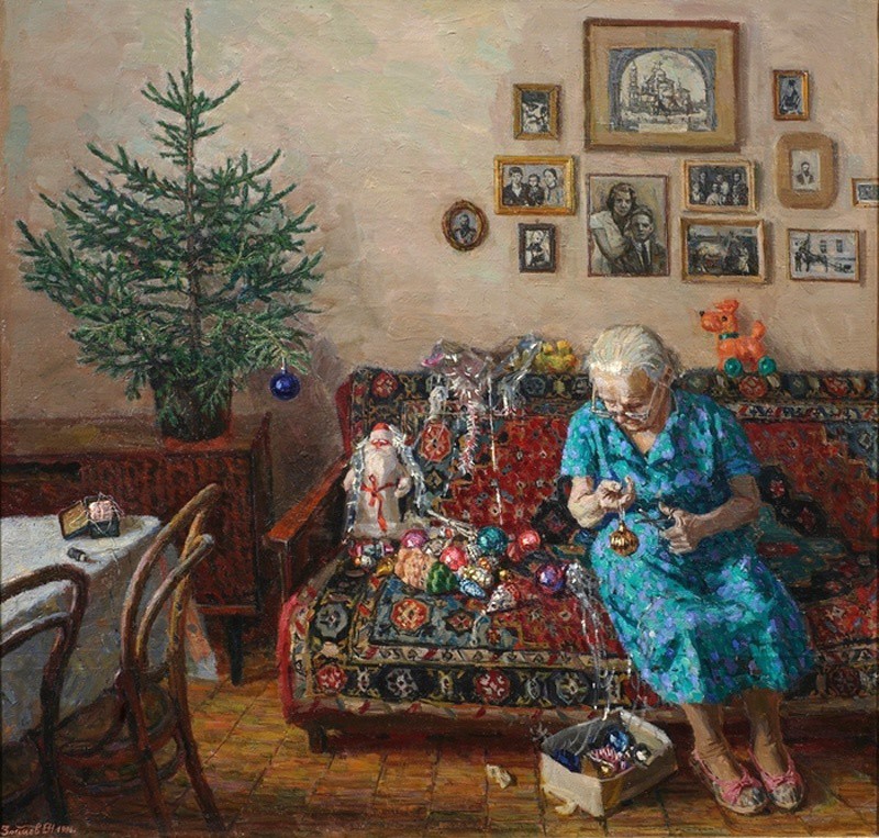 Предлагаю два десятка прекрасных картин, написанных разными художниками в разных жанрах, которые объединяет одна тема — «Новый год». Большинство работ написаны в последние тридцать лет. Надеюсь, что это подборка подарит вам ощущение праздника! Егор Зайцев, «Рождественская елка», 1996