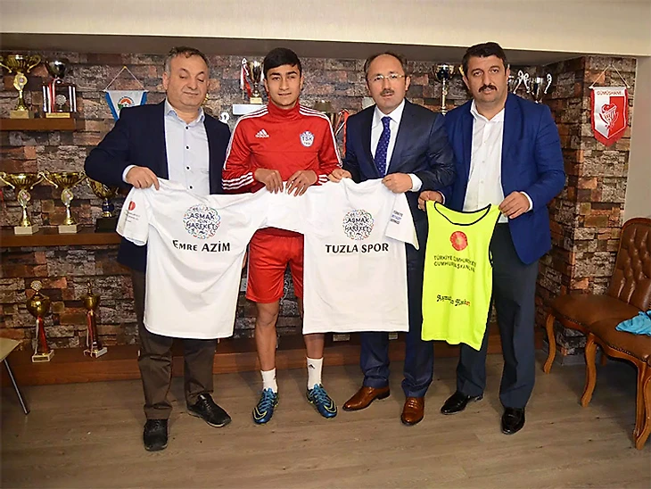 Кажется, фамилия Азим подходит ему как нельзя лучше. В переводе с турецкого она означает «упорство», «настойчивость». В структуре «Тузласпора» он уже 6 лет – когда-то его приметил один из местных тренеров. В трех последних сезонах Эмре выступал за любительские подразделения, забив за это время 82 гола и отдав 36 голевых передач. По поводу дебюта высказался президент клуба: «Эмре сыграл против «Фенербахче» не потому, что не видит левым глазом. А потому что он хороший футболист. Благодаря ему все вновь убедились, что никакие преграды не мешают стать спортсменом». «Он заслужил это волей и борьбой. Цель футбола – не чемпионства, а единство и равенство», – добавляет Левент Аяз, одновременно член правления и пресс-секретарь «Тузласпора».