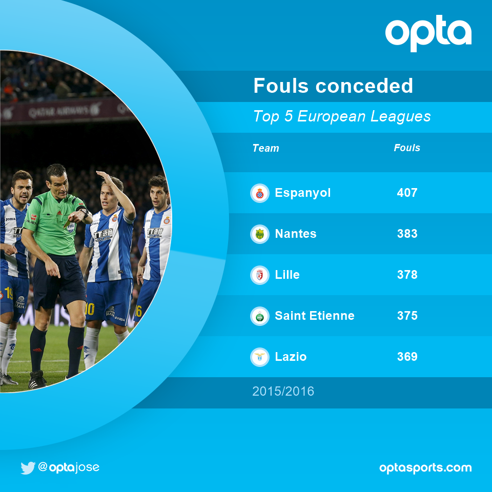 — 407 фолов совершили игроки «Эспаньола» в этом сезоне. Больше, чем каталонцы, в Европе не фолит никто;
