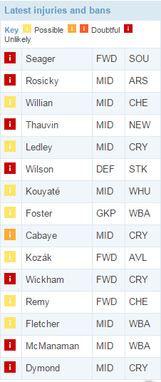 Сюрпризы сюрпризами, но 24-й тур никто не отменял. Из последних проблем выделяем травмы Йоана Кабая и Коннора Уикхэма из «КП», Виллиана из «Челси», Шейху Куяте из «Вест Хэма». Маловероятно, что в 24-м туре сыграют Ян Вертонген из «Тоттенхэма», Александр Коларов, Вилфрид Бони и Кевин де Брюйне из «Ман Сити», Марко Арнаутович из «Стока», Коутиньо из «Ливерпуля», Диафра Сако из «Вест Хэма», Бафе Гомис из «Суонси» и Грациано Пелле из «Саутгемптона».