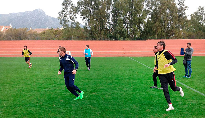 Пока вратари занимаются своими сугубо вратарскими делами, полевые игроки разминаются под командованием Хавьера Нойа. Он хоть и испанец, а по-русски очень даже прилично говорит. Разогрев футболистов, Хавьер передаёт их в распоряжение тренерам.
