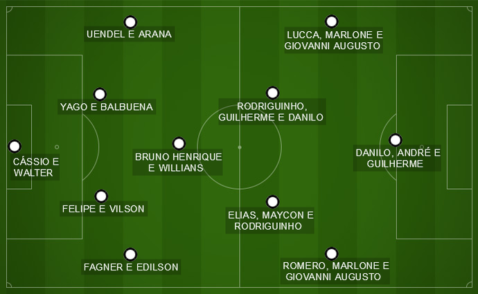 В основном по плану 2 игрока на место, но некоторые могут играть на разных позициях. Кроме указанных следует отметить Рилдо и Лусиано - нападающих, которые восстанавливаются после операций. Также в резерве есть атакантес: Габриэл Васконселос, Исаак и Клаудиньо. Мейас: Алан Минейро и Маттэус Перейра. Загейро Пердро Энрике. Вратари: Видотто, Дуглас и Кайки.