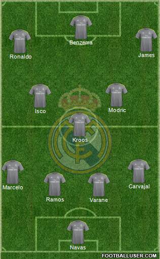Вот так на данный момент выглядит основной состав мадридского "Реала". Бэйл все еще не залечил травму, в основе привычно появился Хамес. Это единственная позиция по которой могут быть вопросы в выборе основного состава.
