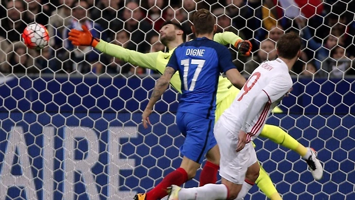 Вроде и схема похожа на русскую, но какие исполнители. Это был, если уж можно так назвать, иностранный легион. Игроки топ клубов Италии, Англии, Испании. Мощные техничные «мавры», готовые ко всему. Очень мобильная опорная линия в лице Диарра и Канте, умеющие бороться, отдавать первый пас, врываться в штрафную. Погба, умеющий все: и отдать пас на любую дистанцию, отбирать мячи, бить точно с любых позиций. Мобильная атакующая линия, которая должна была запутать соперника.