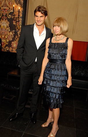 Когда Роджер без галстука, он всегда тяготеет к небрежно расстегнутой рубашке. Докапываться до нюансов на этом фото нет смысла - Анна Винтур компенсирует все недочеты. Почему он с ней не крутит романы?