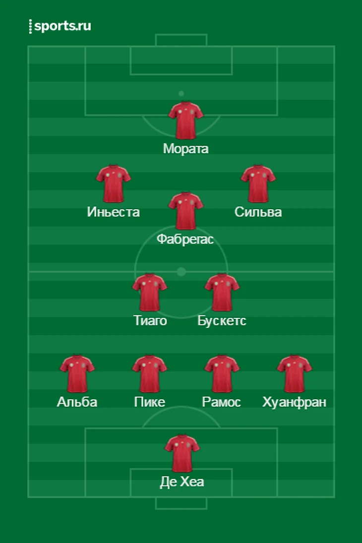 При всем при этом в плане эффективности Иньеста и Сильва предпочтительнее, они ровнее прошлись по сезону (Андресу особенно удалась концовка). Вся эта пятерка будет обеспечивать контроль мяча и контроль игры. Если это работает, то Испания в финале. Если это не работает, Испания выходит в плей-офф не с первого места и не уходит там далеко.