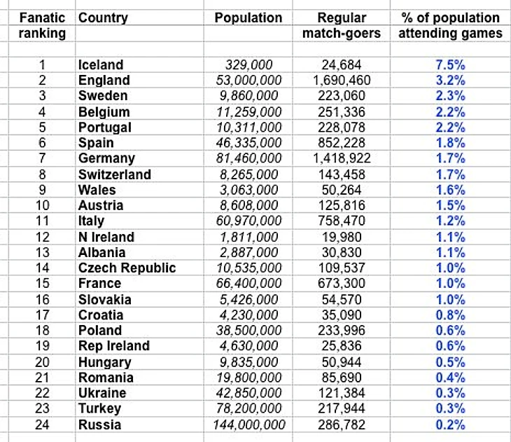 За основу рассчетов бралось соотношение общего количества населения страны и посещаемости стадионов
