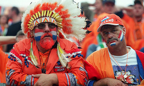 Может, это какой-нибудь знаменитый голландский болельщик? Никто не знает? А, может, и не его вовсе выхватывали время от времени операторы на той игре. Но помню отчетливо перья и куртку.
