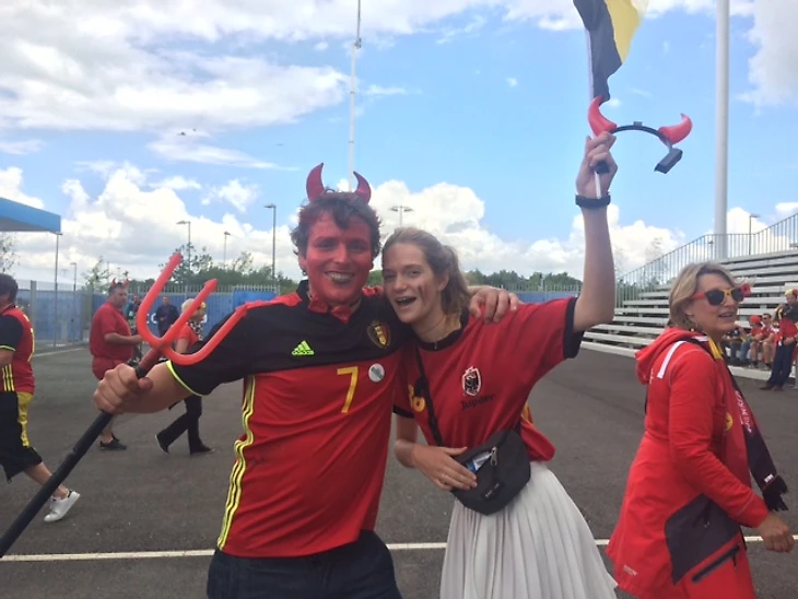 «Символ бельгийской сборной – это красный дьяволенок, поэтому я покрасил лицо в красный, сделал рога и взял вилы. А моя девушка стоит в ностальгической футболке ЧМ-1986, где мы дошли до полуфинала», – сказал бельгиец Никола.