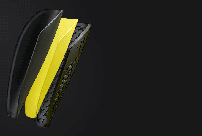 Y – образная структура не только часть дизайна, эта конструкция увеличивает поглощение ударов, такая же структура использовалась в доспехах древних Самураев. Нагрузка после удара равномерно распределяется по все поверхности щитка, в отличии от традиционной конструкции.