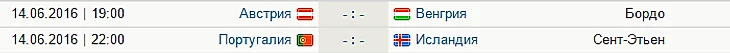 В этом матче должен быть установлен рекорд. Вратарь венгров Габор Кирай может побить достижение Лотара Маттеуса, выйдя на поле в финальной стадии Евро в возрасте 40 лет и 75 дней. Австрийцы отметились в квалификации вторым результатом по очкам среди всех финалистов: лучше выступили лишь англичане. А так, лично по мне, шансы команд равны и сильно искрометной игры не жду.