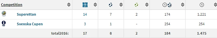 В нынешнем сезоне шведской суперэттан провел 14 матчей, отметившись 7 голами и 2 голевыми передачами. Достаточно приличный результат для 18-летнего крайнего полузащитника.