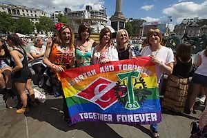 Болельщики московского спартака и торпедо на гейпараде в Лондоне.