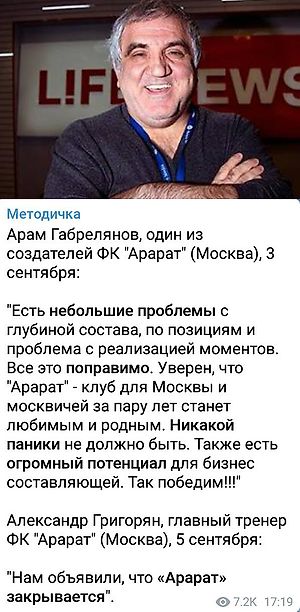 Первая новость про #Арарат Москва на Спортс.ру - 30 мая
