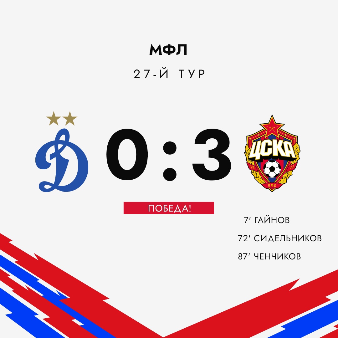 ЦСКА - Онлайн / Победа! Со счётом 3:0 красно-синие одержали гостевую победу над Динамо в МФЛ! 🔴🔵
