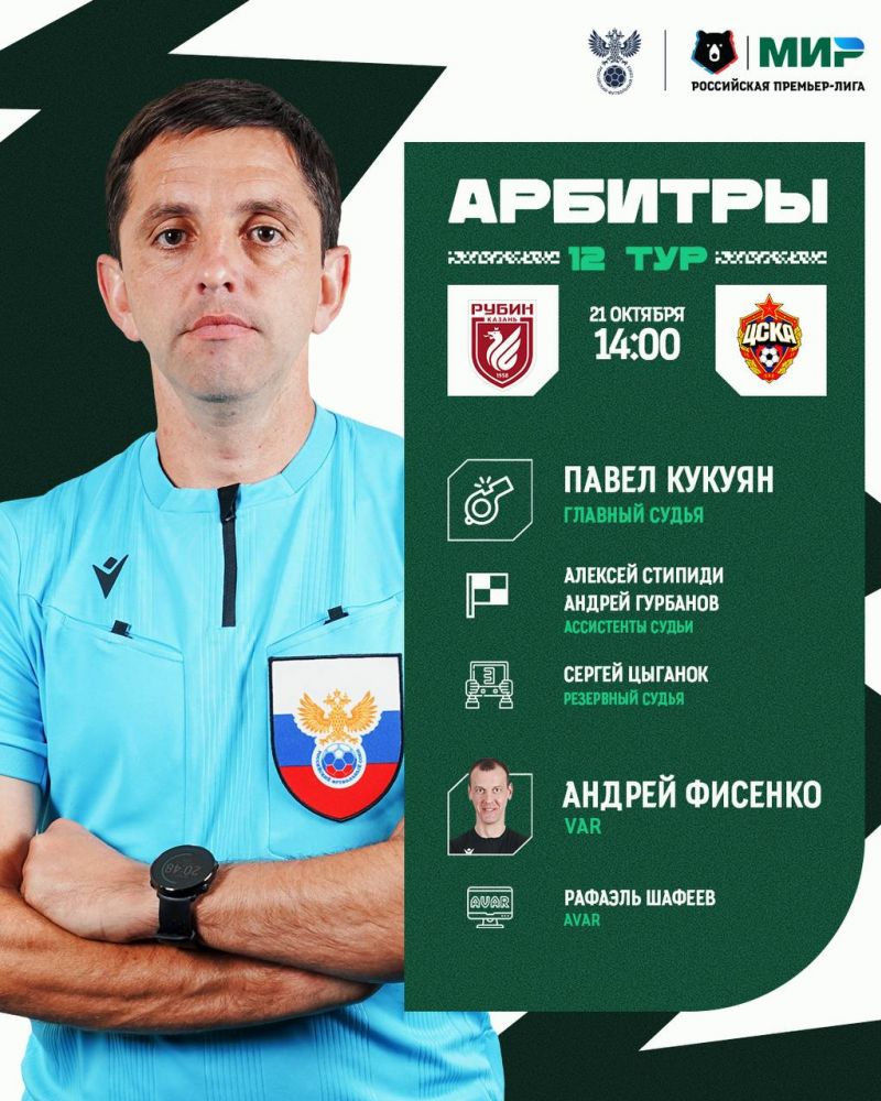 ЦСКА - Онлайн / Рубин – ПФК ЦСКА. Представляем главного судью матча
