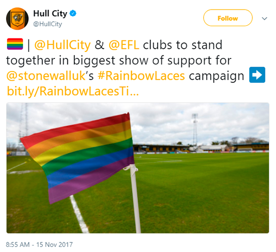«Халл» вместе с другими клубами чемпионшипа в рамках кампании Rainbow Leces поддержит людей с нетрадиционной сексуальной ориентацией. Во время матчей с 25 ноября по 3 декабря угловые флажки и капитанские повязки станут радужными. Логотипы клубов тоже изменятся на время акции.
