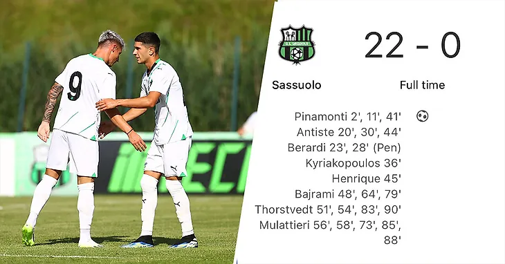 22:0 – привычная предсезонка «Сассуоло». Шесть лет издеваются на одним и тем же соперником!