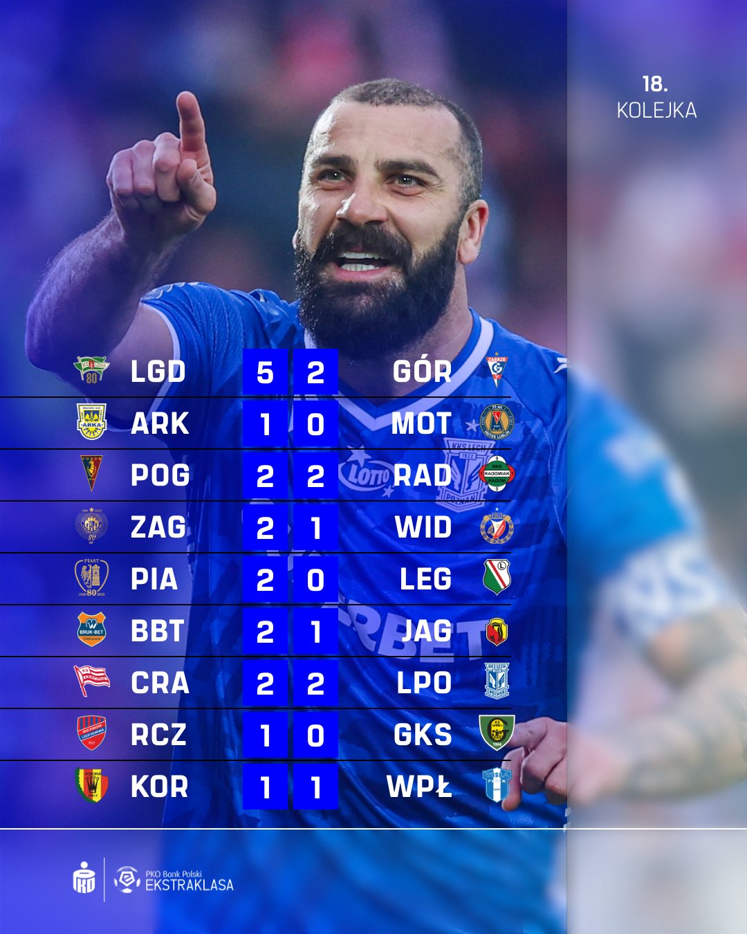«Легия» и «Видзев» продолжают спускаться вниз по турнирной лестнице, зона вылета уже совсем близко, в верхней половине сохраняется плотность, «Лех» уже вернулся в квартет сильнейших
