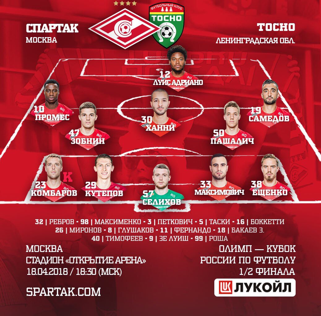 Спартак Онлайн / Состав «Спартака» в матче с «Тосно»
