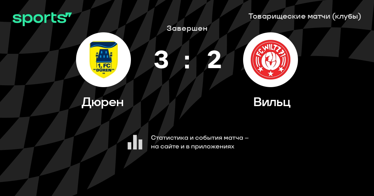 Результат прошлой игры в турнире «Товарищеские матчи (клубы)»: Borussia M'gladbach II – Дюрен 0:1. Дюрен побеждает в 6 последних матчах в рамках турнира «Товарищеские матчи (клубы)». В 6 последних матчах в турнире «Товарищеские матчи (клубы)» Дюрен обязательно забивает. В последних 5 играх Дюрен забивает 9 голов. В последних 5 играх Дюрен пропускает 3 голов.